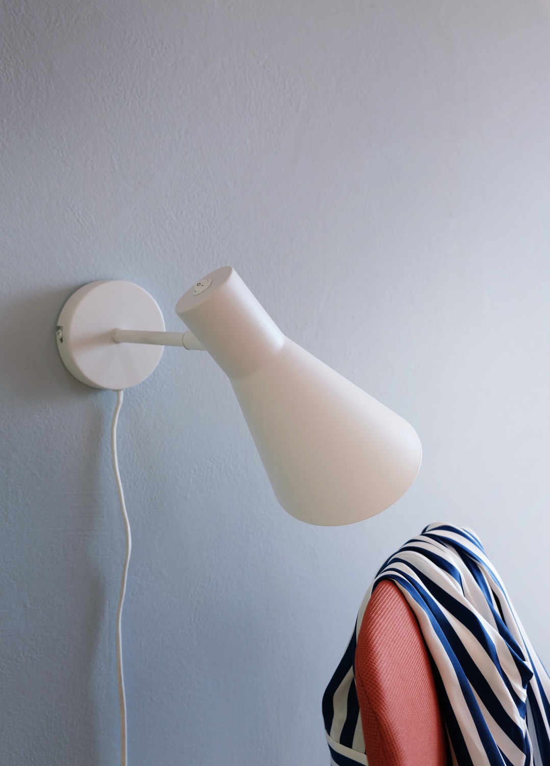 Væglampen leveres med 1,6 meter hvid stofledning og er nem at montere på væggen. Lyskilde medfølger ikke.