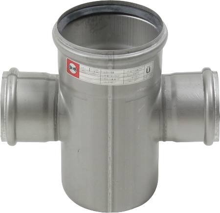 Blücher EuroPipe dobbelt grenrør i rustfrit stål AISI 304 med mål Ø110 x Ø75 mm og presfittings.