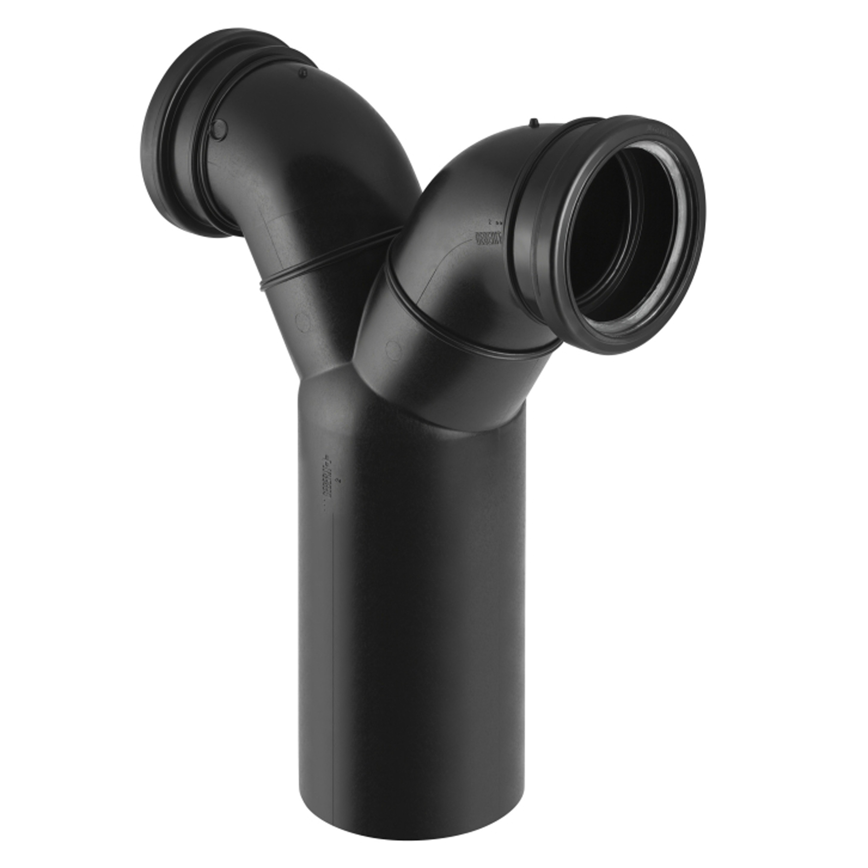 Geberit PEH dobbeltklosetbøjning 90° til væghængt toilet: d=110 mm, d1=90 mm, udført i sort PEH.