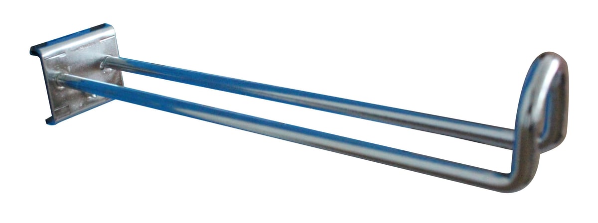 Denne dobbelte krog er ideel til organisering og ophængning af værktøj og andre genstande. Den er designet til at passe på hulplader med firkantede huller og kan også anvendes som hyldebærer.