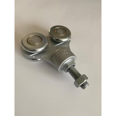 Dobbelt portrulle BT-2 i støbegods med M16x70 mm bolt. Elgalvaniseret og tåler høje temperaturer op til 270°. Max belastning: 600 kg. Dimensioner: 163x125x50 mm.