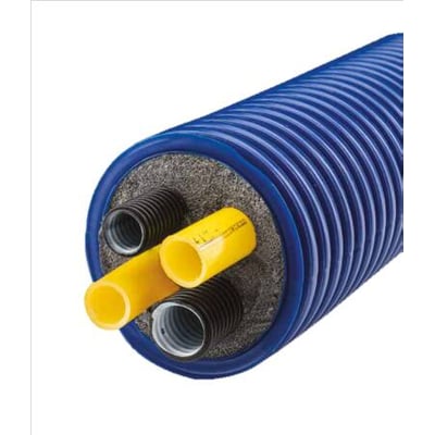 Dette præisolerede Microflex dobbeltrør er en optimal løsning, når du ønsker at transportere varme fra en ekstern varmekilde til en bygning. Røret er udført i dimensionerne 2x40x PN6 og er velegnet til varmeanlæg. Derudover er der indbygget 2x 25mm trækrør til kabler.