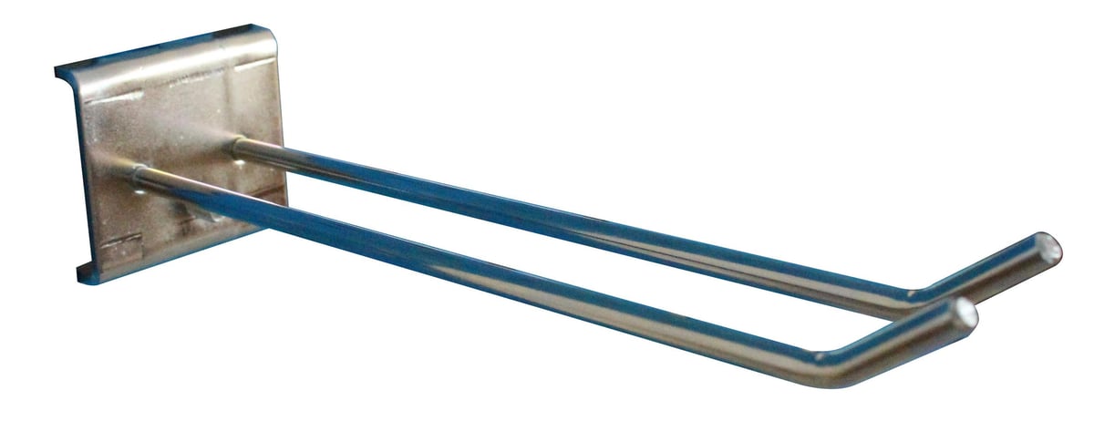 Dobbelt værktøjskrog med en længde på 200 mm, 35 graders vinkel og en bredde på 13 mm. Krogdiameter: Ø4 mm. Passer til hulplader med firkantede huller (9 x 9 mm).