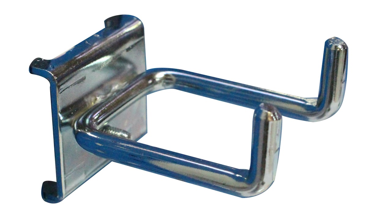 Denne dobbelte værktøjskrog er ideel til organisering af værktøj og udstyr på værkstedet eller i garagen. Med en længde på 45 mm og en 90 graders vinkel giver den god plads og fleksibilitet til ophængning af diverse genstande.