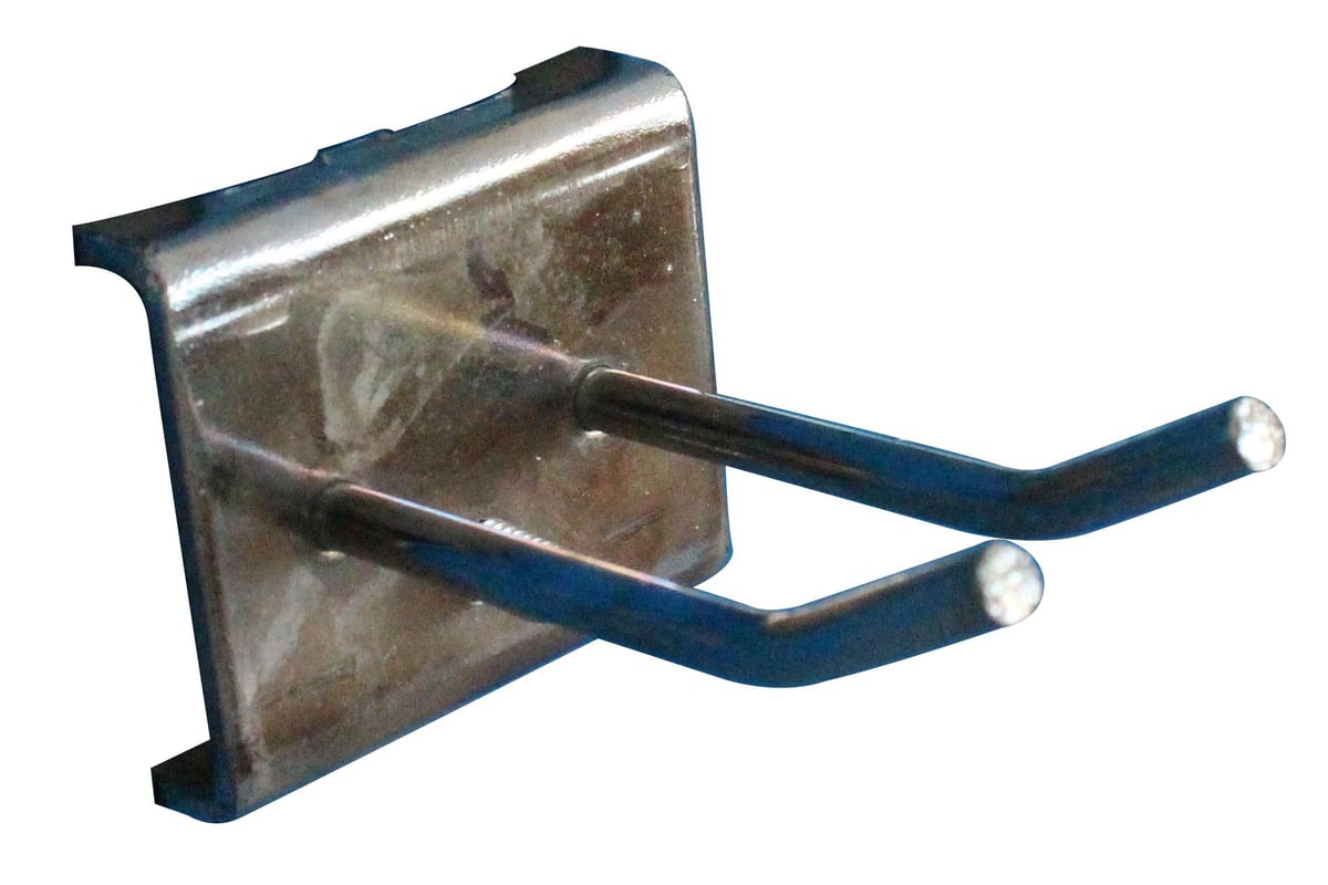 Denne dobbelte værktøjskrog er ideel til organisering af værktøj og tilbehør på værkstedet eller i garagen. Den er designet til at passe på hulplader med firkantede huller.