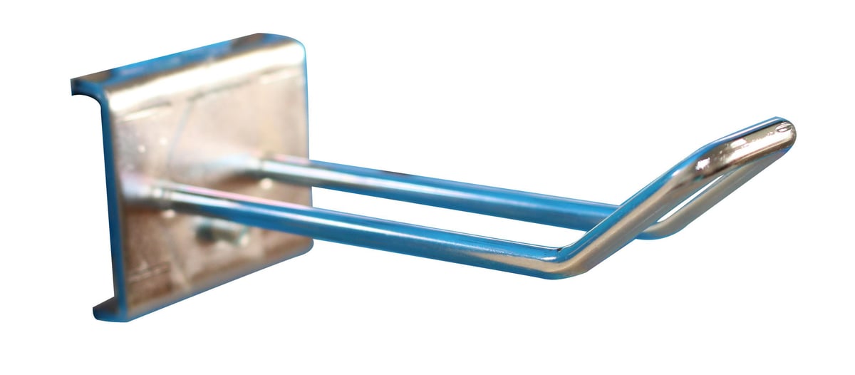 Dobbelt varekrog, 100 mm lang med en diameter på Ø4 mm. Designet med firkantet snude og dobbelt bagplade. Passer til hulplader med 9 x 9 mm firkantede huller og center afstand på 34 mm og 38 mm.