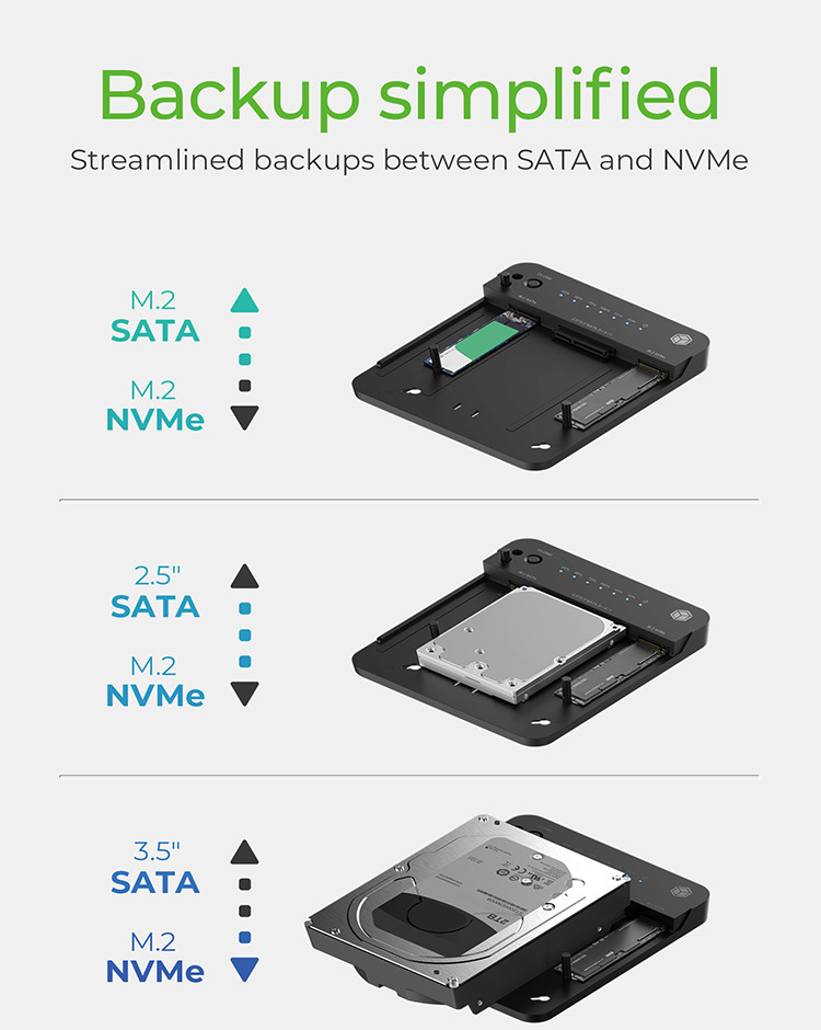 Docking & CloneStation til M.2 NVMe SSD og 2.5"/3.5" SATA