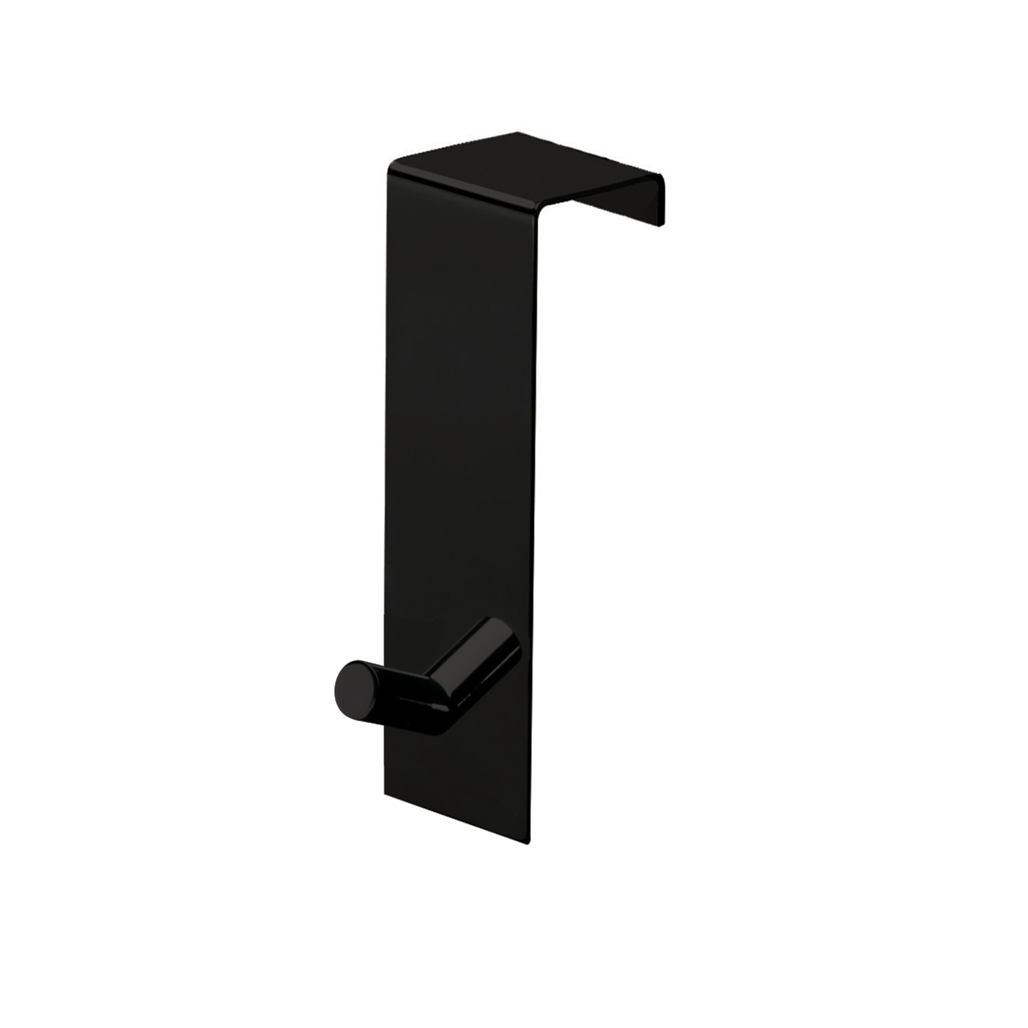 Praktisk dørhænger krog i mat sort finish. Mål: 45x75x140 mm. Ideel til ophæng uden skruer.