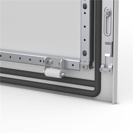 Dørhjulene er designet til at lette lukningen og placeringen af døre, der er udstyret med tungt udstyr, såsom køleenheder. De monteres direkte på dørrammen i bunden af døren og anbefales kraftigt, hvis der monteres udstyr med en vægt på over 30 kg på skabsdøren.