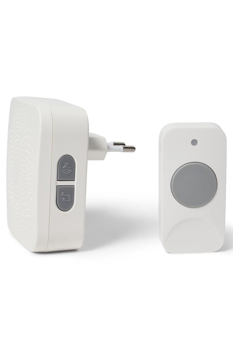 Michaela trådløs dørklokke kit plug-in 230V. Rækkevidde op til 150 meter. Nem installation uden kabelføring. 32 melodier og justerbar lydstyrke.
