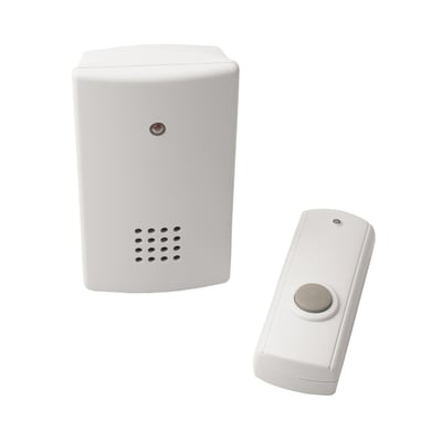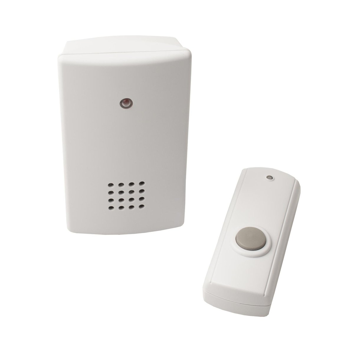 Trådløs dørklokke med ringetryk. Rækkevidde op til 100m. Hvid. Inkl. batteri til ringetryk. Kræver 2x LR6 C-batterier til modtageren (medfølger ikke).