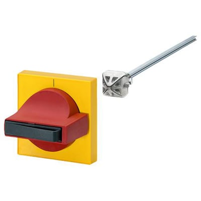 Dørkobling til lastafbrydere 3KL50, 3KM50, 3KA50, 3KA51. Rødt håndtag, gul ramme, str. 1, 6x6 mm aksel.