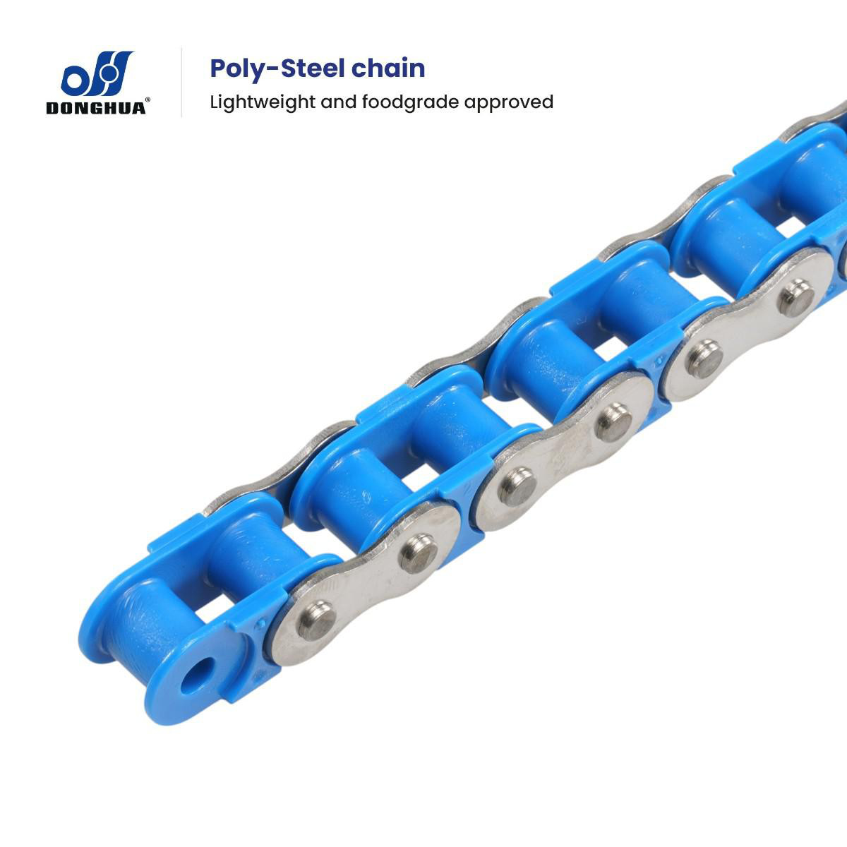 Denne vedligeholdelsesfri kæde kombinerer AISI304 yderled med plastiske inderled, hvilket sikrer en langvarig og problemfri drift.