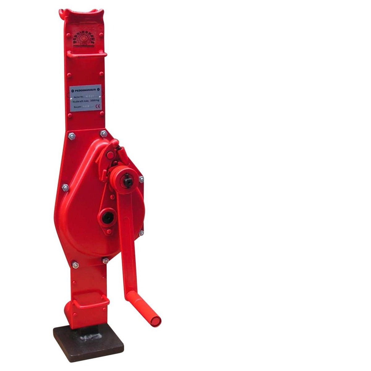 Robust tandstangsdonkraft/kaffemølle fra Peddinghaus med sideklo. Fremstillet i hærdet stål, med klapbart håndsvigt og bæregreb for nemmere transport. Løftekapacitet: 1,5 ton.