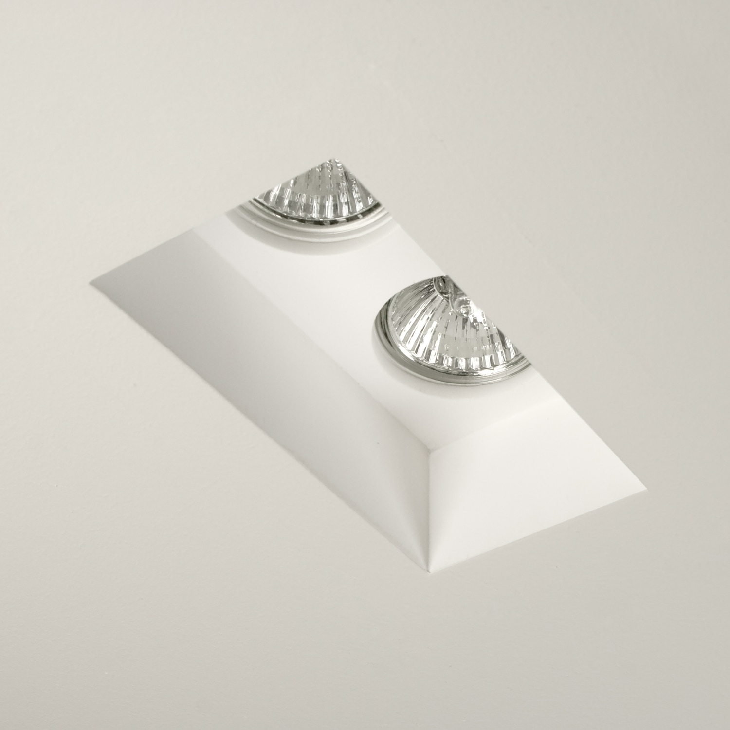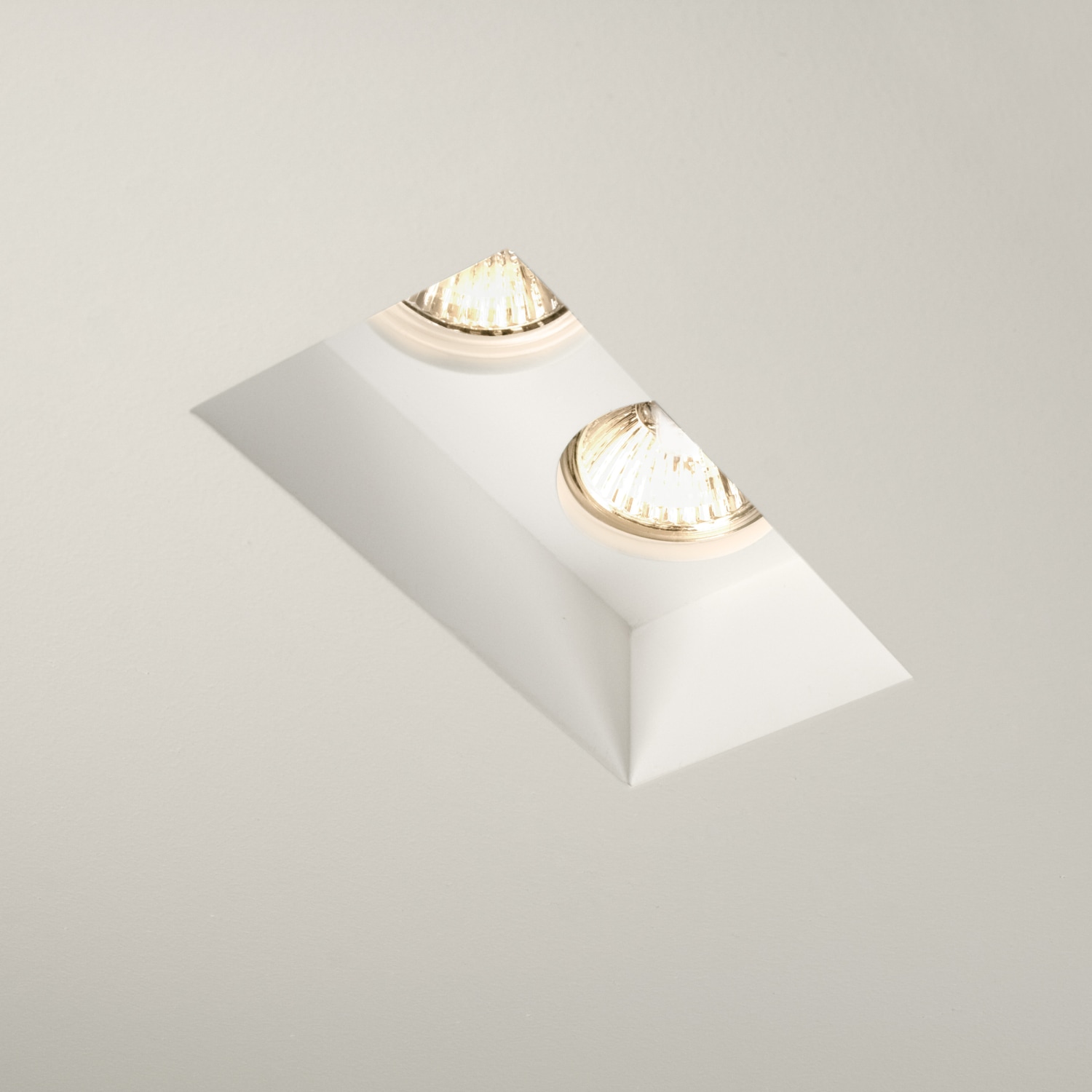 Astro 5654 Blanco Twin fixed downlight af gips til indspartling i loft. 2 x GU10, max. 50W (LED anbefales), 230V, IP20. Udv. mål: 116x188mm. Hulmål: 117x190mm.