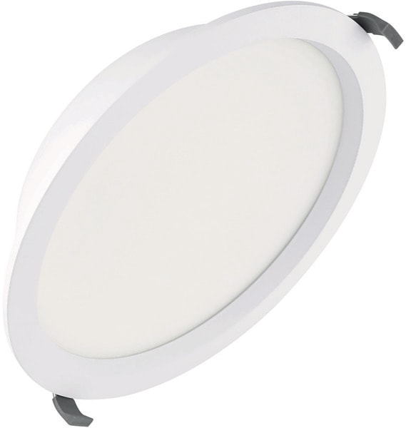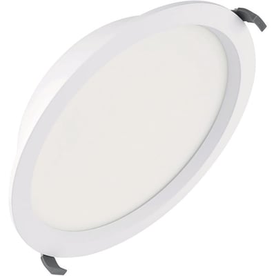 Med en diameter på 265 mm og en højde på 60 mm integreres denne downlight diskret i loftet. Den hvide, opale finish sikrer en ensartet lysfordeling med en spredningsvinkel på 100°. Armaturet er designet til indendørs brug og kan anvendes i et omgivelsestemperaturområde fra -20 °C til +40 °C.