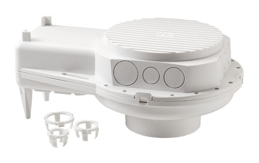 Boks til indstøbning. Testet og godkendt til SG downlights. Cut-out hole Ø83 huller. Cut-out for K-rør, Ø16, Ø20, Ø25. Låseklips til K-rør inkluderet.
