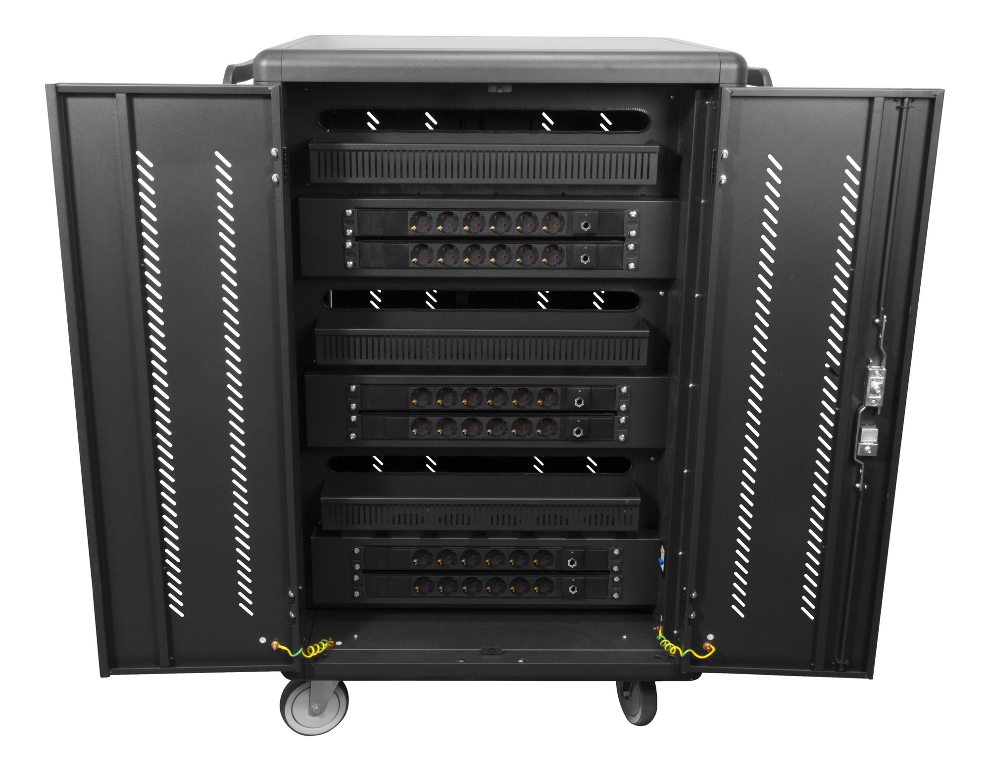 Mobil opladningsvogn til opbevaring og opladning af op til 36 laptops eller tablets (op til 14"). Designet med dobbeltdøre for nem adgang.