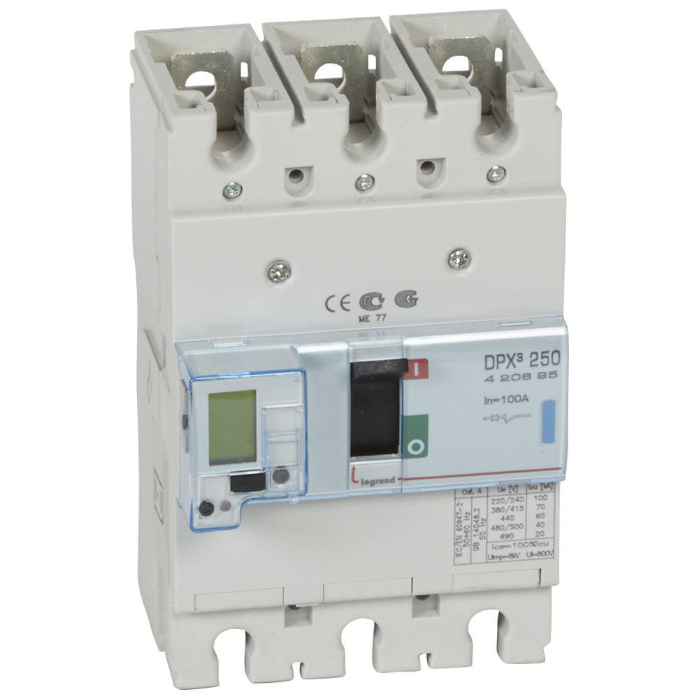 Legrand DPX3 250 maksimalafbryder med elektronisk udløser, 3-polet, 100A og 70kA brydeevne. DPX3-serien tilbyder afbrydere i fire byggestørrelser fra 16A til 1600A.