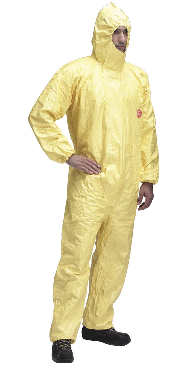 Tychem C heldragt i kategori III, godkendt som type 3, 4 og 5. Fremstillet af stærkt og fleksibelt materiale med polymer belægning. Beskytter mod støv, partikler, syrer og baser.