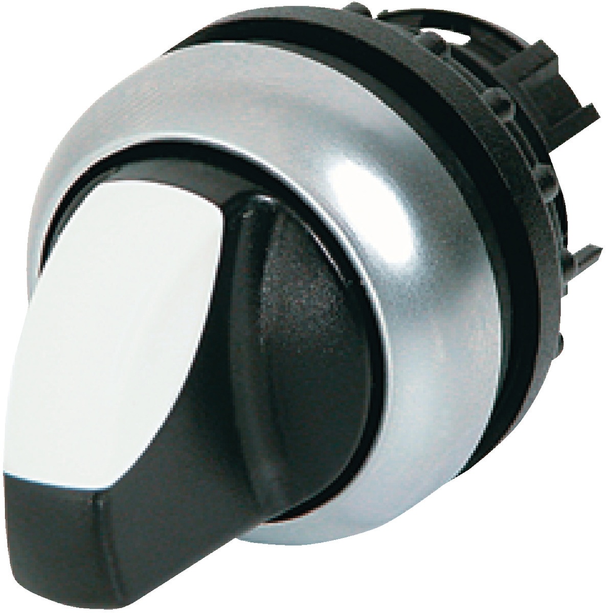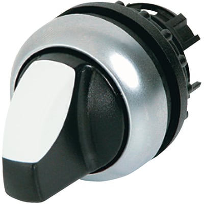 Denne drejebetjening fra Eaton er designet til M22 trykknap serien og leveres med et kort knebelgreb. Den tilbyder fleksibilitet med mulighed for programmering til enten fast stilling eller fjederretur, hvilket gør den ideel til en bred vifte af applikationer. Den har et hvidt lampeglas og en aluminiumsfarvet bundring.