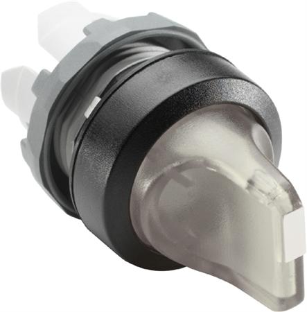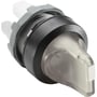 Drejegreb i klar udførelse fra ABB. Kort greb, 2 faste stillinger (B-C) og sort plastikkrave. Ø22mm.