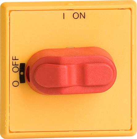 Dette rød-gule drejegreb er designet til montage i tavlefront og er kompatibelt med bryderne OT16FT til OT40FT.