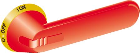 Pistolgreb rød/gul, I-On/0-Off, låsbar, længde: 125mm, IP65, til 12mm aksel (OXP_) for OT630...800, OS630...800.