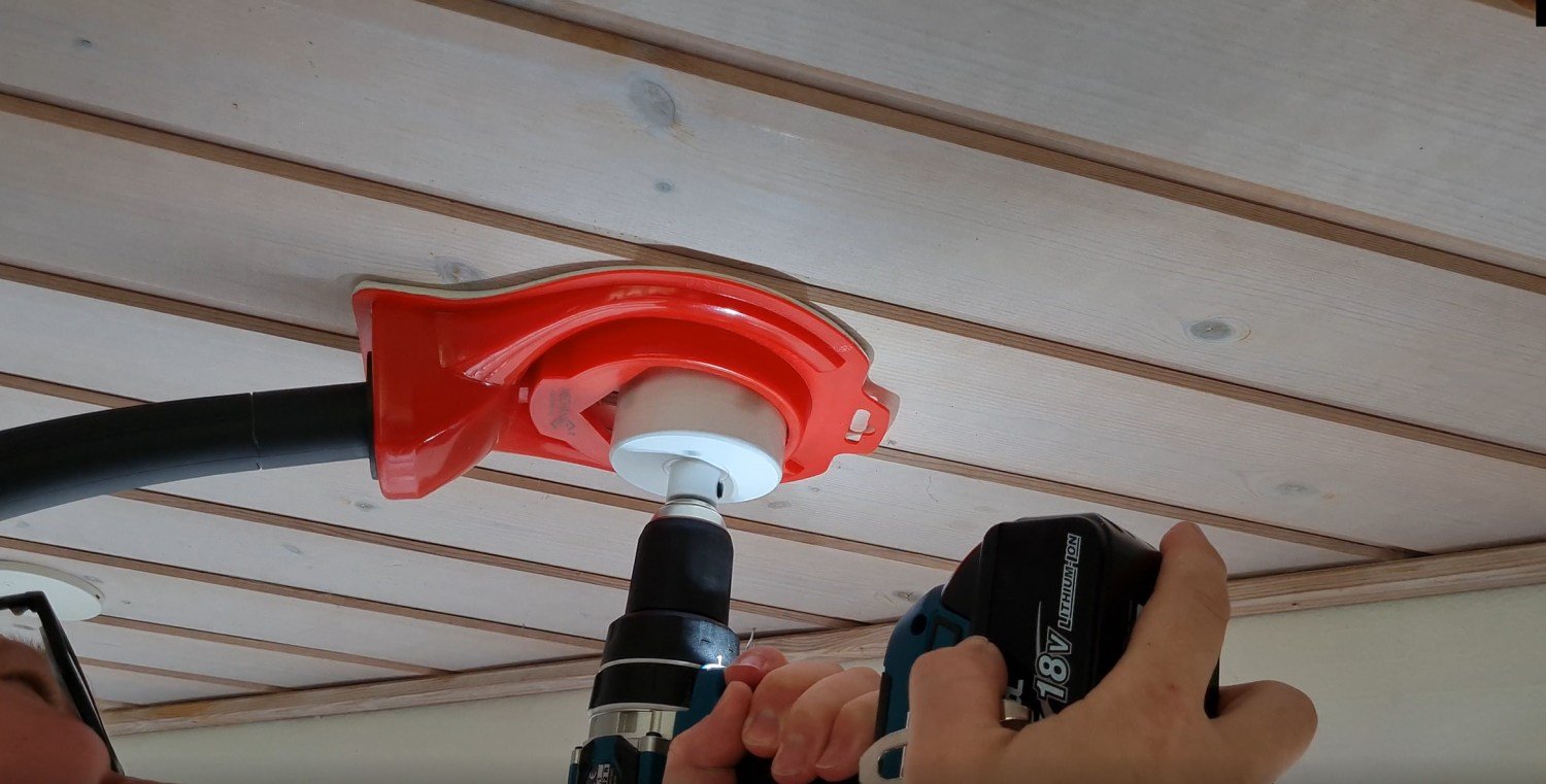Støvskærmen suges fast til overfladen ved hjælp af suget fra støvsugeren. Den er fremstillet af fleksibel plast med en blød gummiliste, der ikke efterlader mærker på overfladen. Den lave kant sikrer et godt udsyn til boringen.