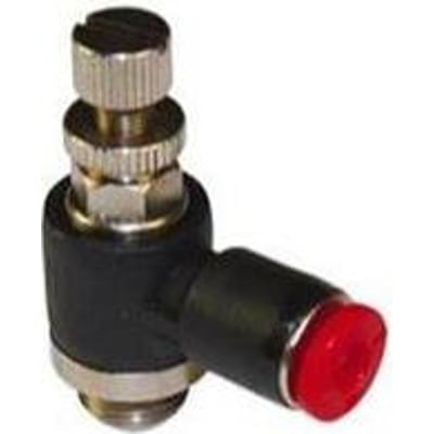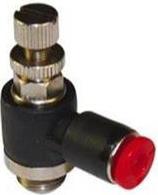 Norgren Pneufit® C banjo flow control, Ø6, M5. Hurtig montering uden værktøj og optimalt flow. Rustfrit stål grab-ring til nylon- eller polyurethanrør. Nikkelbelagt messing for korrosionsbestandighed.