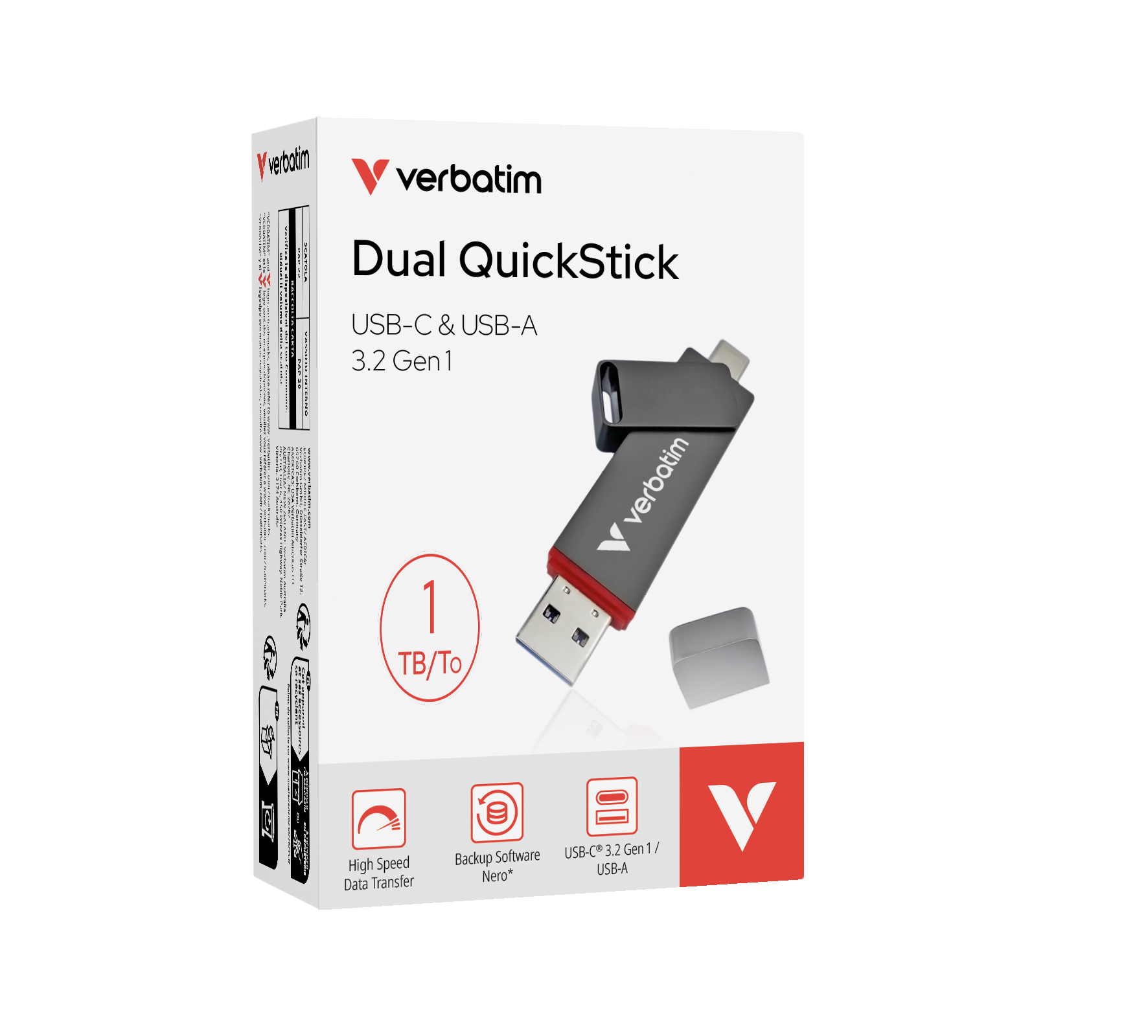 Verbatim Dual QuickStick kombinerer hastigheden og ydeevnen fra en SSD med det kompakte format af et USB-drev. Denne løsning er ideel til brugere, der har brug for hurtig og pålidelig dataoverførsel i et brugervenligt design.