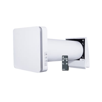 Duka One S6B er en et-rums-ventilation med varmegenvinding til bryggers og bad, der installeres i ydervæggen.