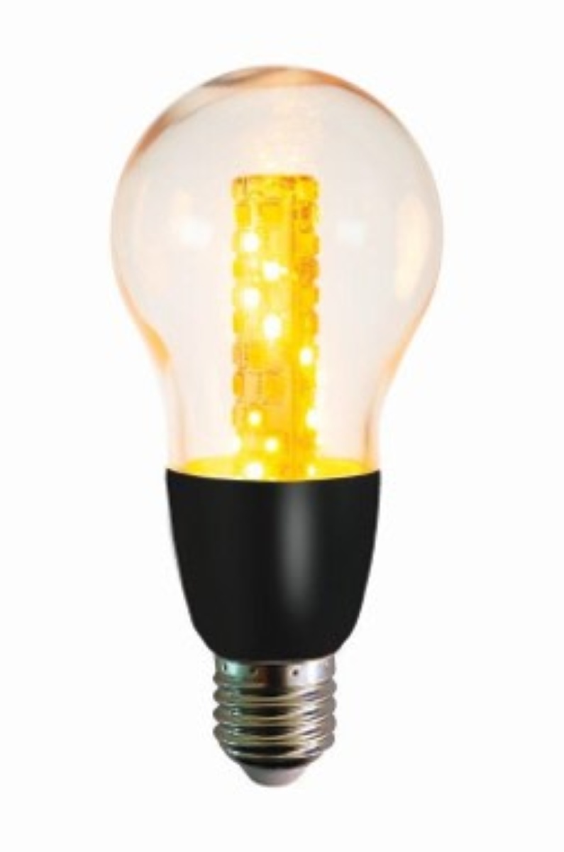 Duo Fire lampe med 68 LED, IP44, klar glas, 3W, 300 lumen og E27 sokkel. Brændetid op til 25.000 timer. Ø: 60 mm, H: 120 mm. Sort sokkel.
