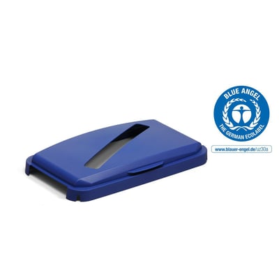 Hængslet låg med papiråbning til Durabin 60 liter affaldsspand. Let at montere med clip-on system, som sikrer fastgørelse til beholderens øvre kant. Låget forbliver åbent ved løft.