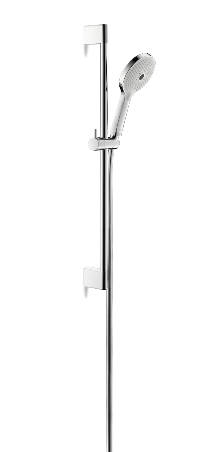 Komplet brusesæt fra Duravit med en rund håndbruser, 3 jetstråler og en 1600 mm bruseslange. Den blanke kromoverflade giver et elegant look.
