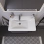 Duravit D-Neo håndvasken kombinerer moderne design med høj funktionalitet. Den asymmetriske form med vask i venstre side giver et unikt udtryk og praktisk anvendelse. Håndvasken er ideel til montering på et vaskeskab, hvilket giver et stilrent og organiseret badeværelse.