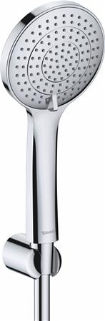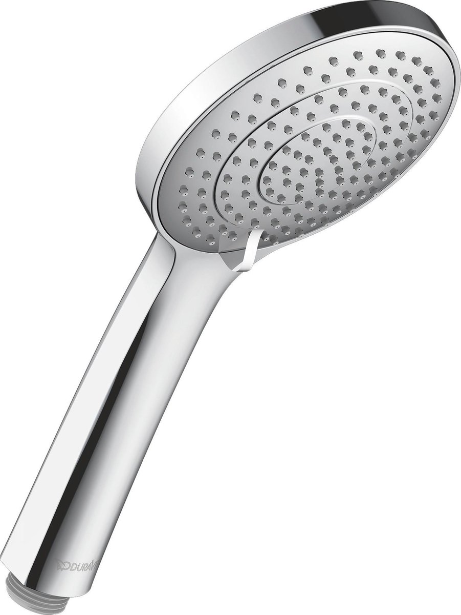 Duravit håndbruser med 3 stråletyper, MinusFlow teknologi og rengøringsvenlige silikonedyser. Justering af stråletype ved drejning. Vandforbrug: 9,0 l/min (3 bar).