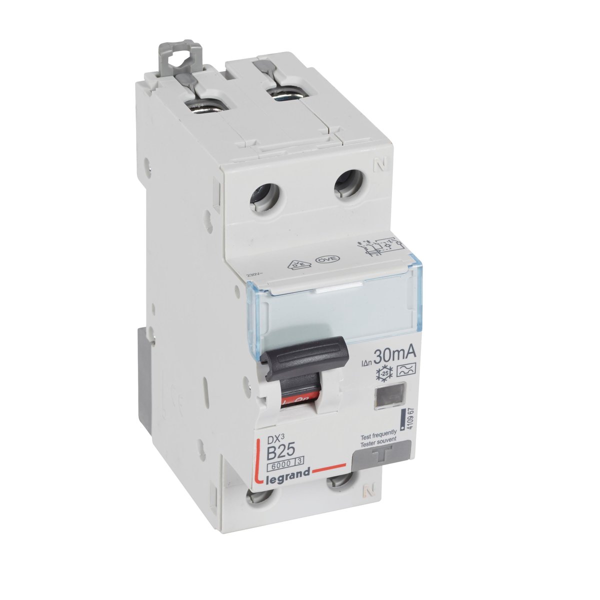 Denne kombiafbryder fra Legrand er en kombineret DIN-skinne monteret termomagnetisk afbryder og fejlstrømsafbryder. Den beskytter effektivt ledningsinstallationer og brugsgenstande mod: