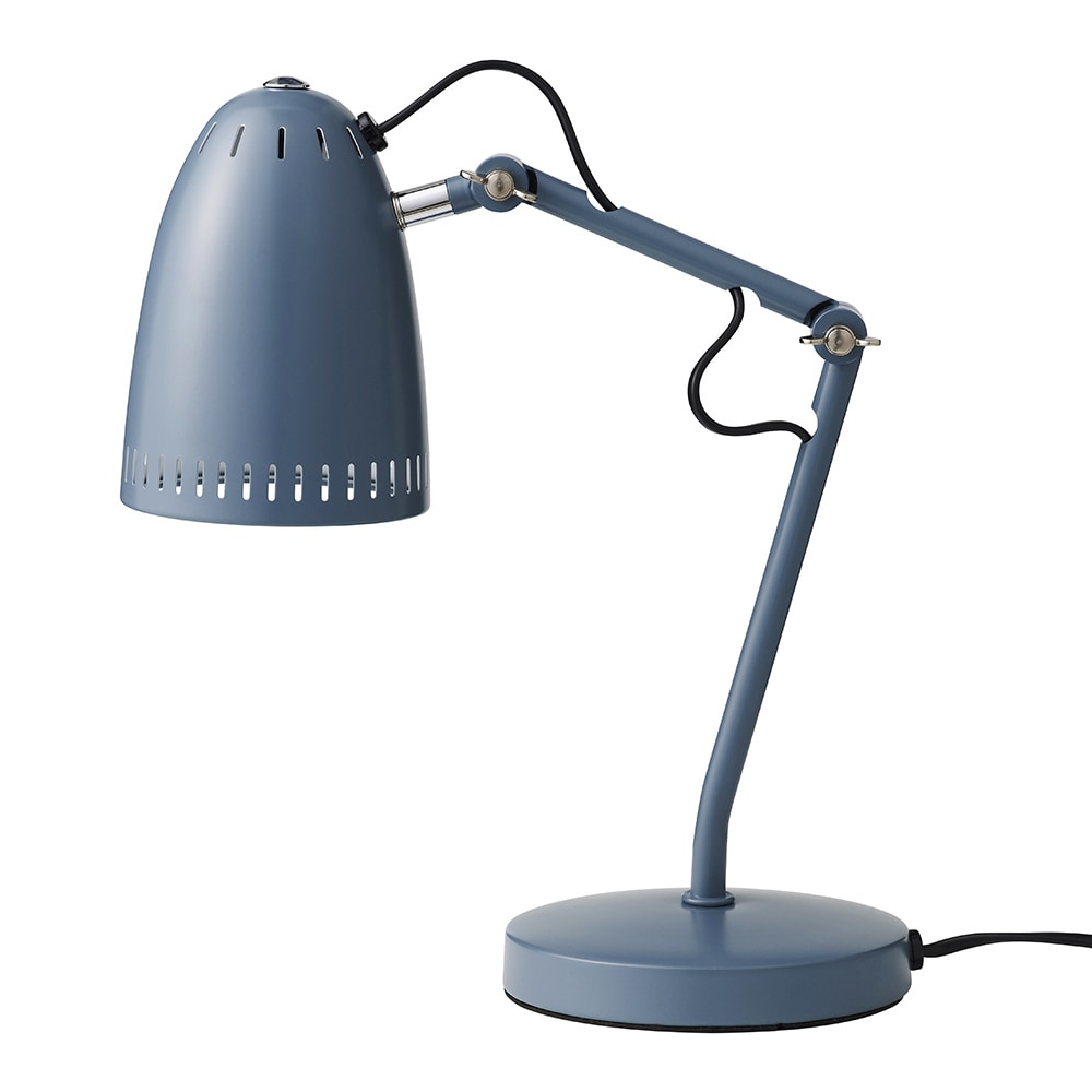 Superliving Dynamo 345 bordlampen er udført i mat blåt metal og tilbyder et industrielt design, der passer ind i moderne indretninger. Lampens skærm har udstansede huller og kan drejes 345°, hvilket giver en fleksibel belysning, der kan rettes præcist derhen, hvor behovet er.