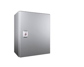 Alsidigt elskab i stål med montageplade og låge. Mål: 300x400x120 mm.