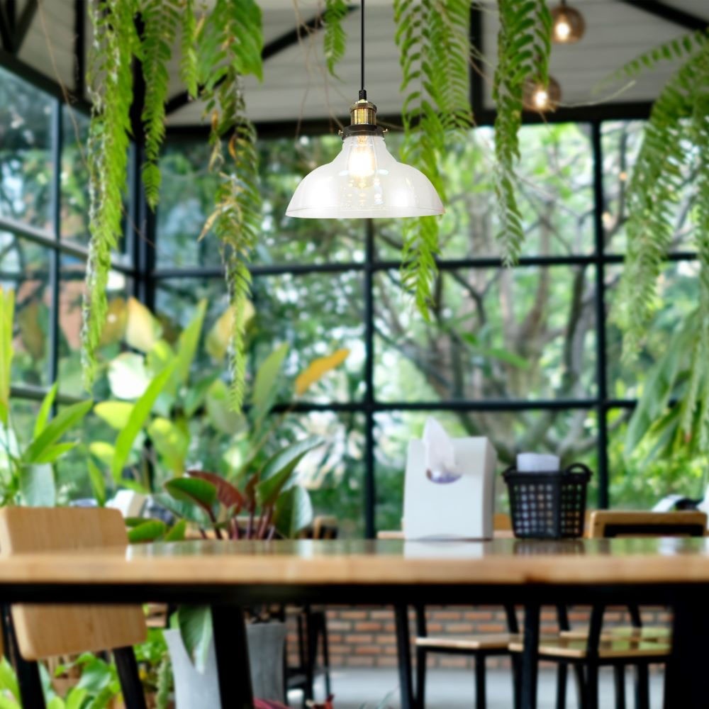 Elegant pendel med glasskærm og metalbase. Ø24,5cm, E27 fatning, max 60W. Perfekt til enhver indretning.