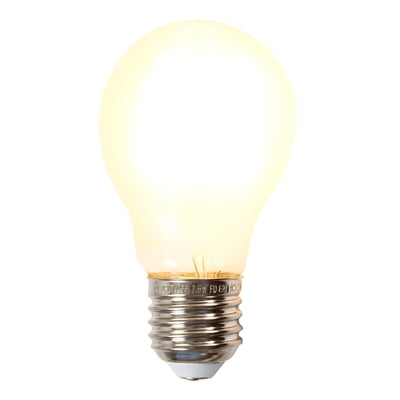Med opal glas udglattes skyggerne fra lampeskærmen, hvilket gør den til det rette valg til alle designerlamper. Den giver et varmt og behageligt 2700K lys, som den gamle glødepære, og kan derfor monteres overalt i hjemmet.