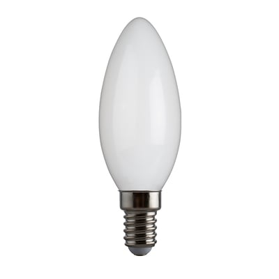Denne 2,5W LED pære erstatter en 25W frostet/opal kerteformet glødepære og har samme facon, mål (35x98mm) og lysstyrke.