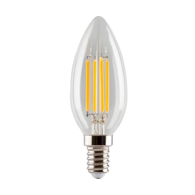 Denne 4W LED pære erstatter en 40W klar, kerteformet glødepære og har samme form, mål (35x98mm) og lysstyrke. Den er dæmpbar med de fleste lysdæmpere og har en ekstra høj farvegengivelse.