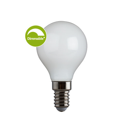 Denne 3,4W LED pære erstatter en 40W frostet/opal glødepære og har samme facon, mål (45x80mm) og lysstyrke (470lm). Den kan dæmpes på de fleste lysdæmpere og har en ekstra høj farvegengivelse på hele CRI95.