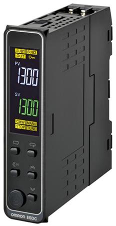 Professionel temperaturregulator E5DC-RX2ASM-017 til DIN-skinne (22,5 mm) med universal I/P, 1 x relæ OUT, 2 AUX, EVT I/P 1, burnout SSR, 100-240 VAC.