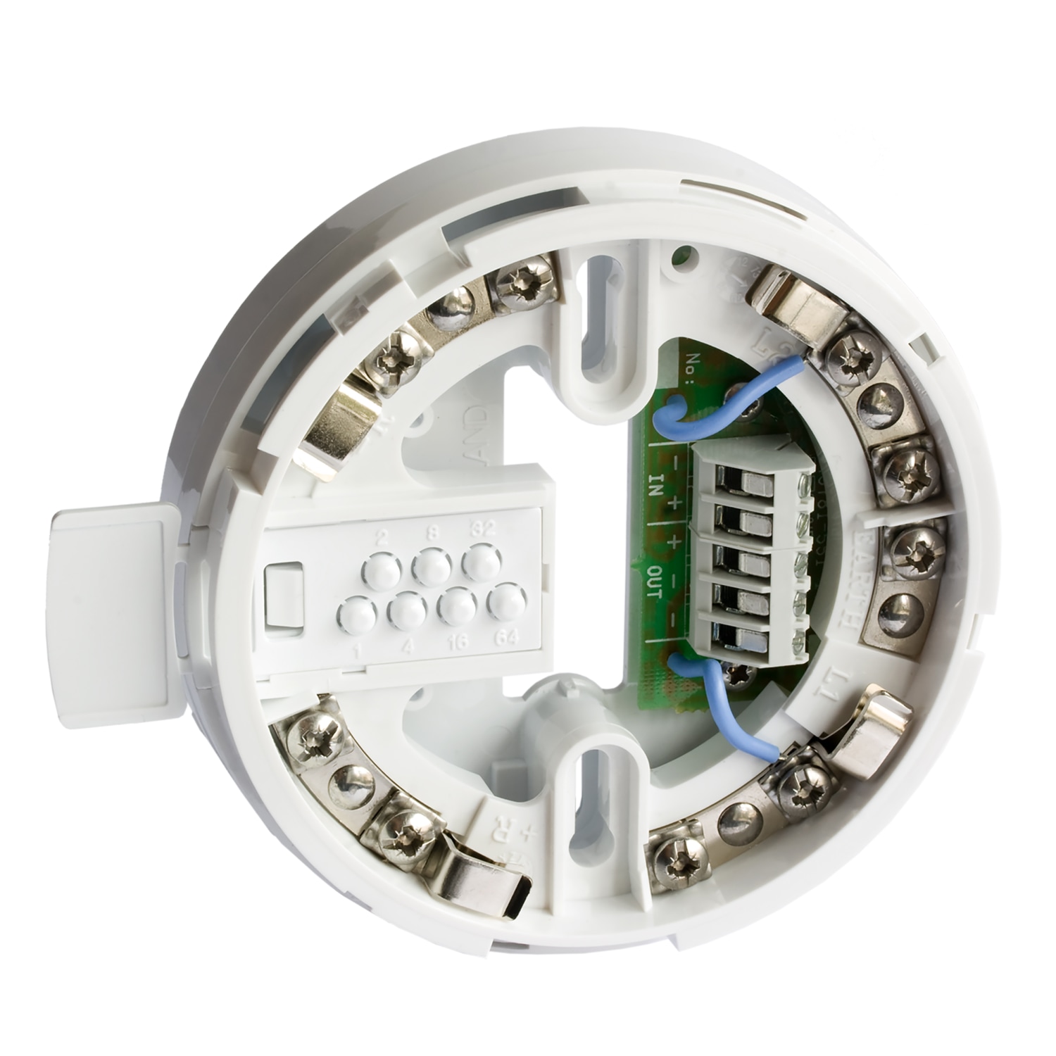 Denne sokkel (EBI-11) er designet til Intellia-systemer og adresseres via detektornr.brik (inkluderet). Den er udstyret med en isolator og er beregnet til brug med ALCx sløjfekort.