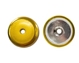 Eclipse guld neodymium pottemagnet med undersænket hul til skruehoved. Dimensioner: Ø20x7mm. Hulstørrelse: Ø4,5 mm. Passer til M4 skrue. Trækkraft: 9 kg. Pakke med 10 stk.