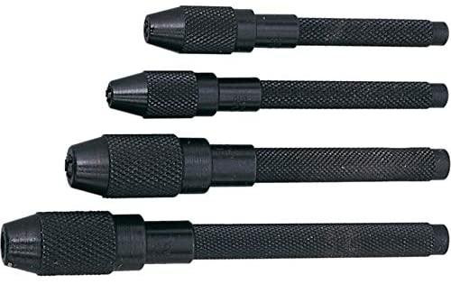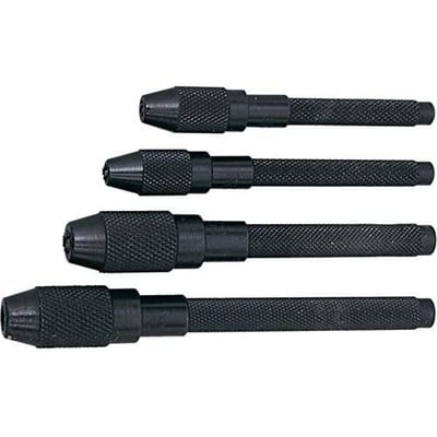 Håndholdt spændepatronsæt designet til at holde om runde materialer. Det hule skaft muliggør, at materialet kan være længere end spændepatronens længde. Sæt bestående af 4 dele.