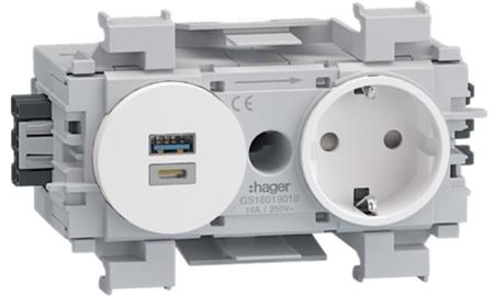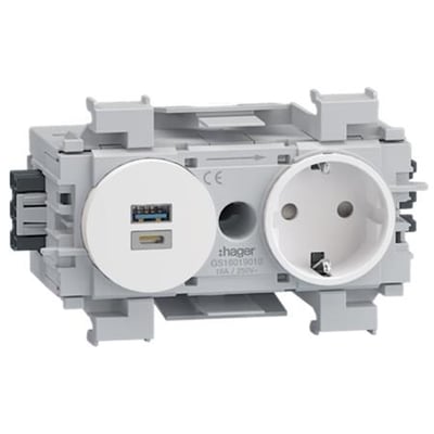 Denne frontmonterede stikkontaktenhed fra Hager er designet til nem integration i Hager kanaler og DA standere med 80 mm låg. Den er udstyret med en 3 amp USB-lader, hvilket gør den ideel til moderne arbejdsstationer.
